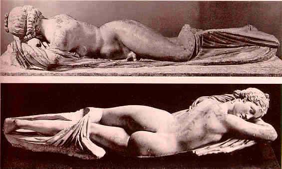 - There is another reclining Hermaphrodite sculpture here, female above and male below. The Romans really seemed to have liked that sort of thing.